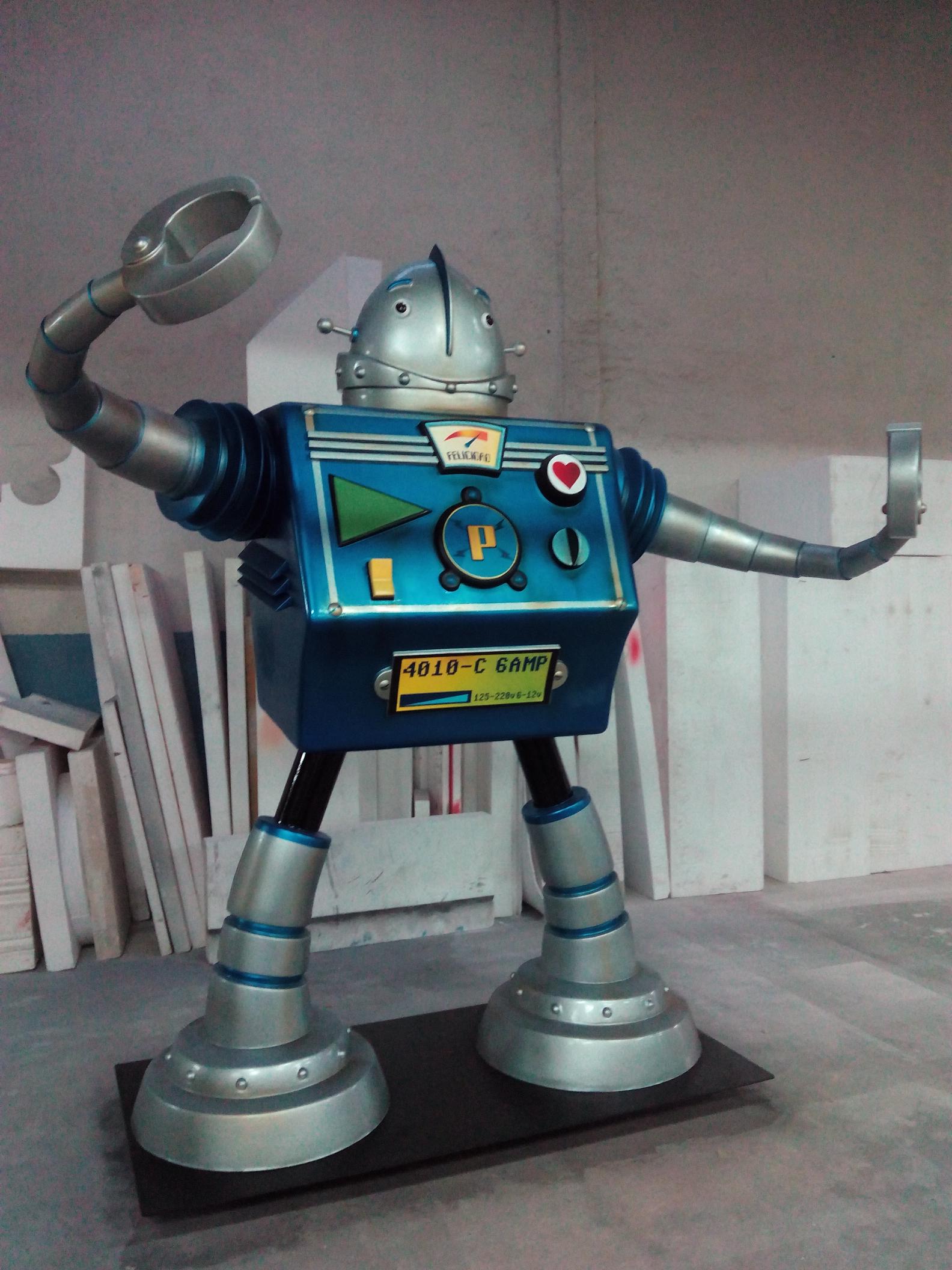 LupaDetalles FIGURA ROBOT PITIFLU DE 2,5M DE ALTURA PARA EL CORTE INGLESCorpóreos, Esculturas y figuras, Reclamos Publicitarios