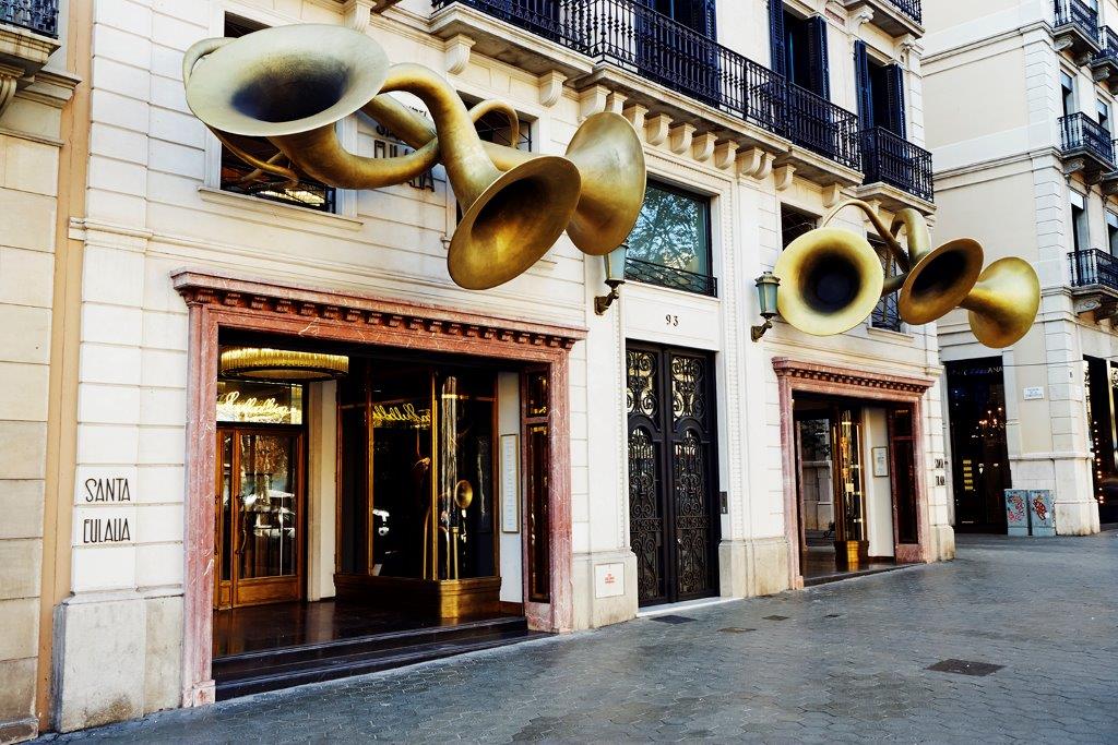 LupaDetalles CORPÓREOS TROMPETAS DECORACIÓN FACHADA NAVIDAD TIENDA SANTA EULALIA, BARCELONACorpóreos, Decorados, Escenografía y atrezzo